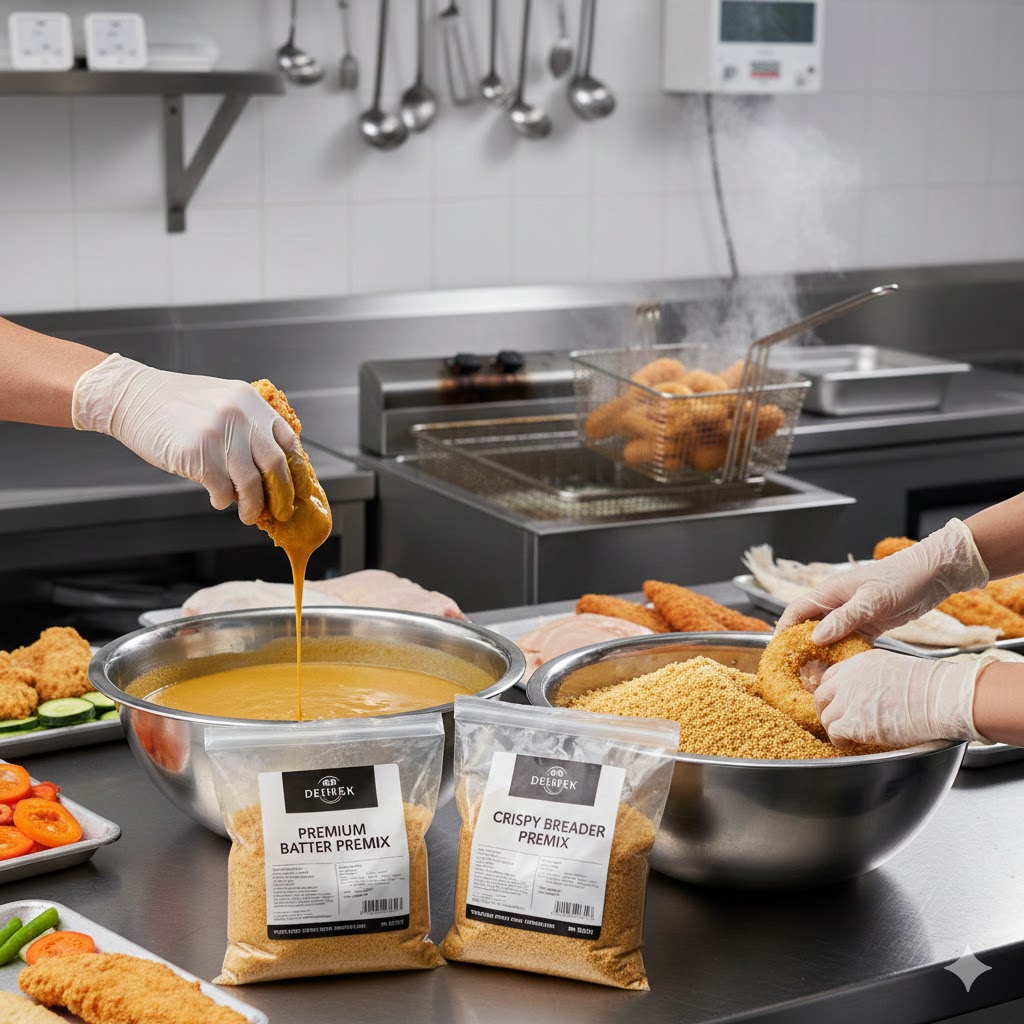 Batter and breader premixes comprise a blend of flour, starches, seasonings, leavening agents, and functional additives formulated to deliver optimal texture, crunch, color, and taste. These premixes eliminate variability in preparation, reduce kitchen labor, and enable uniform results across batches — making them a preferred choice in commercial kitchens and industrial food processing.