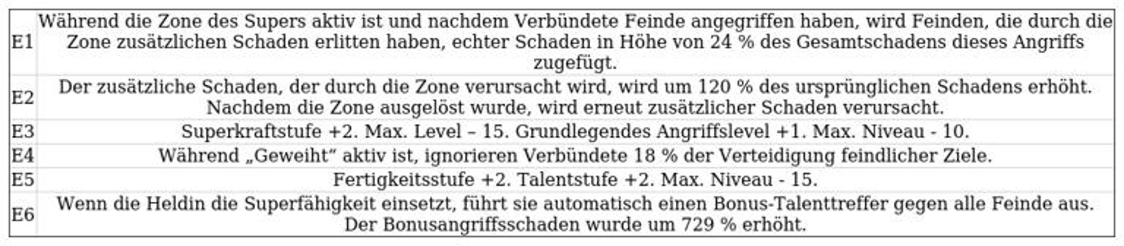 • Supermacht: Steigert sowohl den erlittenen Schaden bei Feinden als auch den von Verbündeten verursachten Schaden.
