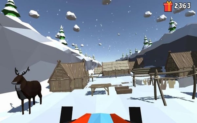 While riding down the mountain, you’ll also see gift boxes scattered across the track. Collecting these gifts increases your score and can be used to unlock new sled designs. This small reward system gives players an extra reason to keep playing and try to beat their previous records.