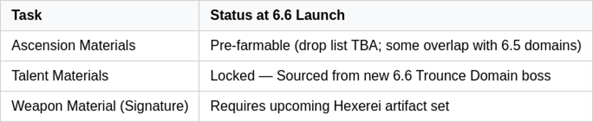 Action items: reach the highest World Rank you can before patch 6.6 to maximize material drops, and hold onto weekly boss ascension materials until after the patch goes live.