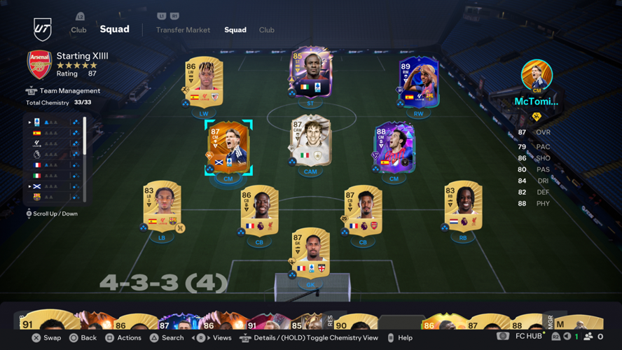 • You need to build a team with an 87 minimum squad rating, using 11 players.