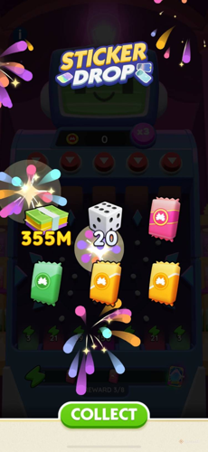 Visit the in-game store every eight hours to claim the refresh rewards; aside from Peg-E chips you’ll often get cash, bonus dice, and sometimes extra sticker packs that speed up progress.